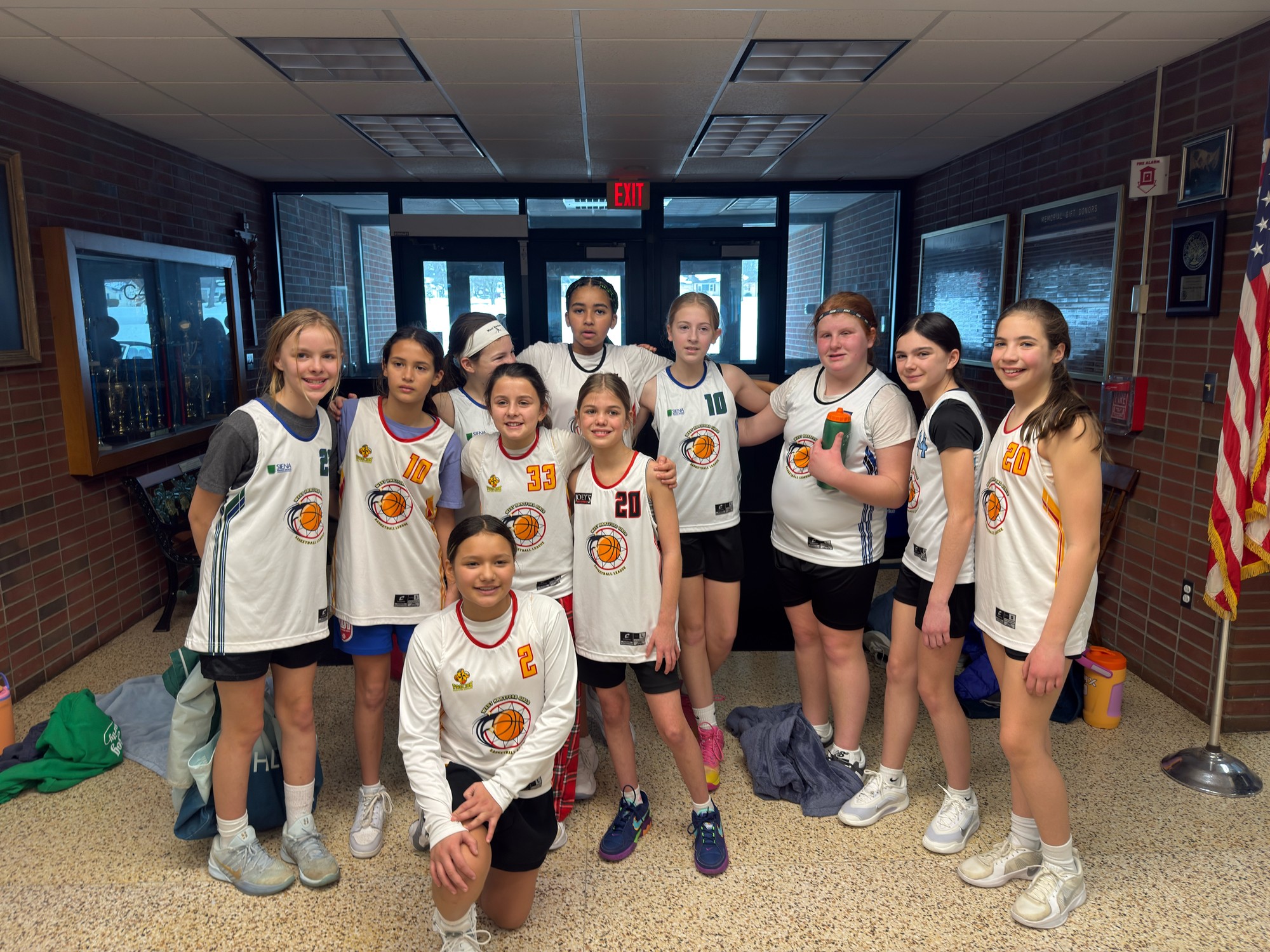 West Hartford Girls Basketball League Juniors Division posing after winning the JV Division Corpus Christi February Frenzy Tournament