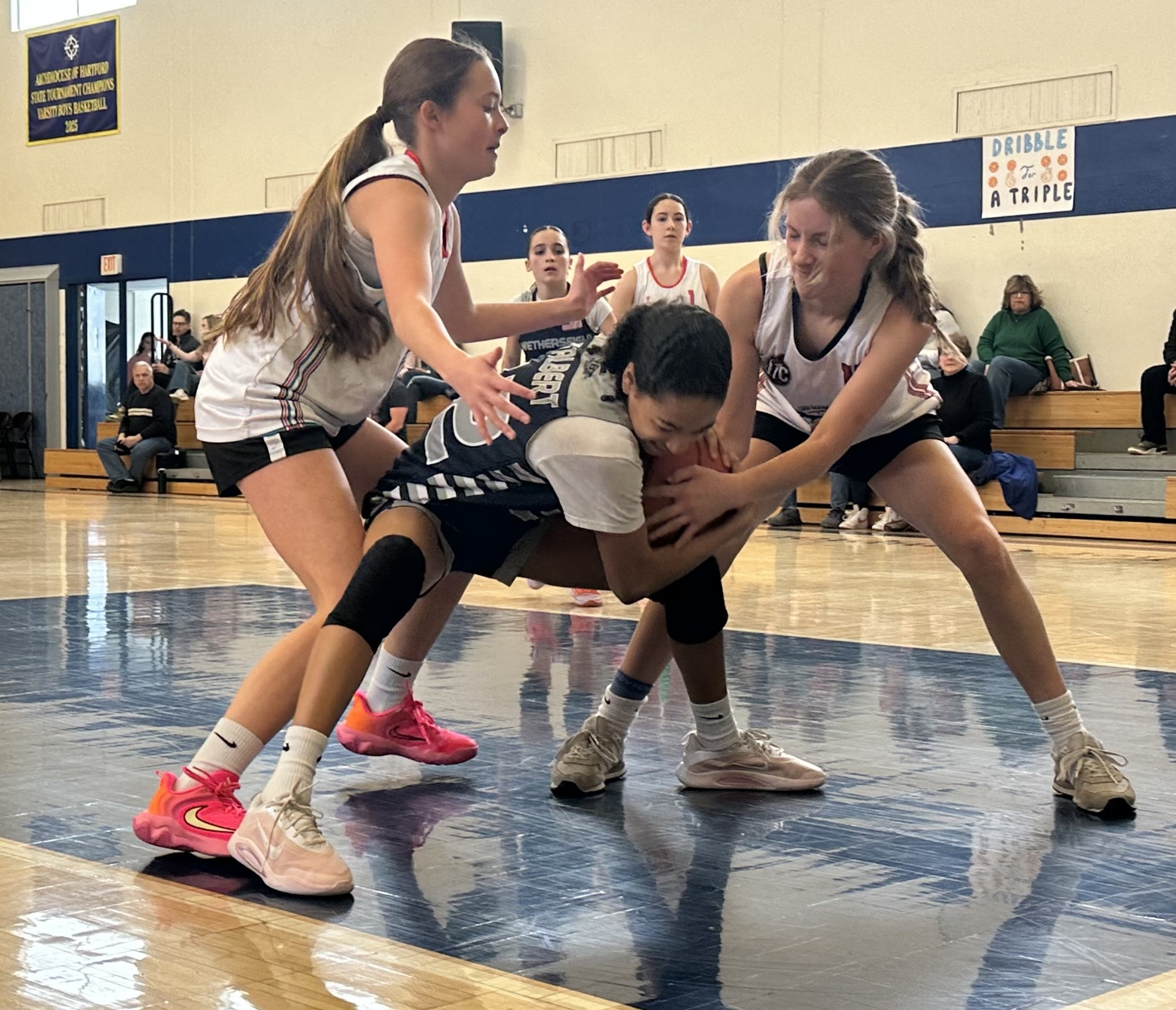 Then, on Saturday, they were defeated in a prime-time battle against the tournament host, Corpus Christi Middle School Varsity squad 30-11. On Monday, the team played the travel team from Wethersfield and lost a heartbreaker at the buzzer 19-18 to end their tournament run.