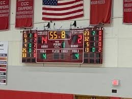There is an electronic scoreboard used for Seniors Division Games held at Conard High School. The scoreboard is a Fair Play MP-80 Wireless Controller.